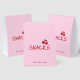 This table tent features a playful “Girls Gone Mild” snacks design, created to coordinate perfectly with a chic bachelorette party setup. Set against a soft blush pink background, the sign highlights bold cherry red typography for a fun, eye-catching look that’s easy to read at table level.