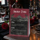 Transport your guests to a world of dark, enchanting elegance with our vintage gothic wedding signature drinks bar pedestal sign. The deep, aged burgundy wine background sets the stage for a striking contrast, as bold white text emerges from intricate black text boxes. Three-dimensional gothic elements adorn the design, capturing the essence of mystery and romance. Unleash the magic and set the tone for an unforgettable wedding day. Created by Simply Farmhouse Press.