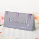 Gradient Whimsical Purple Floral Mariage Réservé Table Tente Signes élégants Réservés Table Tente Signes pour vos invités spéciaux Réservez un endroit spécial pour votre famille avec ces panneaux élégants et élégants de table. Le design floral violet et doux dégradé créent une atmosphère romantique et enchanteresse. L'avant du panneau comporte le mot "Réservé" dans une police audacieuse et élégante avec un effet d'ombre portée. L'expression "pour la famille de la mariée" est également incluse, ainsi qu'une illustration délicate d'une mariée. L'arrière du panneau reflète l'avant, offrant un aspect propre et cohésif. Ces panneaux de tente de table élégants et fonctionnels vous aideront à créer un aménagement spécial et mémorable pour votre mariage.