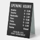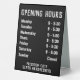 Heures d'ouverture de la boutique ou du magasin Horaires d'ouverture pour afficher sur un comptoir ou une étagère. Horaires d'ouverture du coiffeur ou des heures du salon de coiffure lorsqu'ils sont ouverts aux clients exposés, comme exemples typiques d'utilisation. Convient à n'importe quel point de vente.