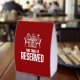 These high-impact paper table tents are the artful way to show that tables are reserved at your dining establishment. Customize image and/or messaging. Identical design on reverse.