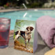 Hunter dog with bird in mouth. Colorful vintage drawing. Retriever with colorful hunter fur