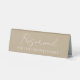 Réservez une table d'accueil de mariage pour la famille du marié avec ce panneau de tente de table qui est une couleur kaki avec un script blanc stylisé. L'impression se fait d'un côté seulement.