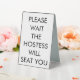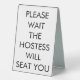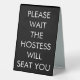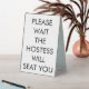 Une pancarte indiquant que l'hôtesse vous accueillera indique aux clients qu'ils n'ont pas à s'inquiéter de trouver un endroit où s'asseoir. Il leur donne un sentiment de soulagement et de confort, sachant que le restaurant s'occupe d'eux dès leur entrée. La tonalité décontractée utilisée par le panneau met également les convives à l'aise, puisqu'il s'agit d'une atmosphère décontractée et conviviale où l'on peut se détendre et déguster son repas sans avoir à se soucier de trouver un endroit où s'installer. Inutile de préciser que ce type de signalisation est indispensable pour tout restaurant qui souhaite offrir à sa clientèle une expérience gastronomique exceptionnelle.