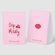 Célébrez la future mariée avec ce présentoir de table Enterrement de Vie de Jeune Fille Girls Gone Mild ludique et élégant. Le devant présente la phrase coquine « Buvez avec modération » avec des cerises adorables à côté du mot « Buvez », créant un point de mire amusant et prêt à être photographié. Le dos ajoute un icône de baiser avec un rouge à lèvres gras ainsi que « Les Filles en Liberté » en bas, complétant le thème avec une touche coquine.