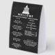 Easy to edit, just add your business logo and custom text to these personalized 5 x 7 paper table tents with a trendy black chalkboard effect and make them into your very own for your company's specific needs. This simple modern table top sign template consists of two headers beneath your logo and two columns of white text on a faux black chalkboard. The same template is repeated on the back of the custom paper table tents but with separate input fields (except for your logo) so that you can really pack in the information as needed. These custom paper table tents are perfect for restaurants, bars, beauty salons, gyms, real estate, hotels, retail stores or whatever other small business your company runs. Just add your logo via upload, add personalized text in white and create your own paper table tents with the trendy look of black chalkboard.