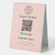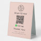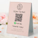 Professional Cash App QR Code Scan to Pay Logo Blush Pink Boost vos options de paiement sans contact avec votre entreprise grâce à ce professionnel Cash App QR code scan to pay logo Table Tent Sign. Élégant et élégant, ce panneau est parfait pour l'affichage à votre comptoir de caisse, table de restaurant ou partout où les clients peuvent facilement scanner et payer. Customisez le design avec votre logo d'entreprise et personnalisez-le avec un message.