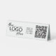 Pancarte de tente de table moderne pour votre entreprise avec votre logo et code QR pour que les clients scannent pour effectuer un paiement ou pour une liste de vos produits, services, prix ou d'autres informations.