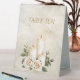 Une très belle et délicate cérémonie aux chandelles mariage numéro de table signe de tente jaune pâle avec roses blanches, bougies blanches et design rose.
