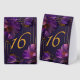 Bring elevated style and better table visibility to your reception with the Luminous Violets Wedding Table Tent Card. Designed with radiant violet florals, rich jewel-toned purple hues, and elegant gold frame accents, this folded table number display offers a refined and practical solution for upscale wedding seating.