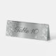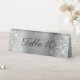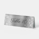 Créez votre propre modèle de texte de numéro de table de mariage à la fois à l'arrière et à l'avant du panneau de tente de table. L'arrière - plan de l'art numérique présente une parties scintillant en argent brillant et faux sur les bords latéraux, sur un faux fond gris gris foncé. Les couleurs principales de la parties scintillant décorative effets numériques, ombre graphique et élégante calligraphie sont gris, argent, noir et blanc. Le style et la taille élégants de police de calligraphie peuvent être changés au besoin. Supprimez le texte du numéro de tableau d'un côté si vous le souhaitez.
