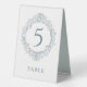 Vintage Elégant Dusty Bleu Baroque Mariage Numéro de table Tente Signal. Un mariage classique sophistiqué Numéro de table Tente Signe avec des illustrations bleu poussiéreux vintages sur arrière - plan blanc. Il est idéal pour des célébrations de mariage élégantes dans un style classique.