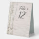 Panneau du numéro de table de mariage de style rustique fait dans une écorce de bouleau à l'aspect arrière - plan, avec des graphiques de troncs de bouleau sur le côté gauche. Personnalisez le texte de chaque table à votre réception.