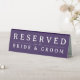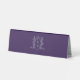 Signe de table réservée dans un violet riche, argenté et blanc. Faites savoir à vos invités où sont assis la mariée et le marié. Personnalisez avec vos propres mots et noms et ajoutez vos propres initiales de monogramme dans la conception de la couronne monogramme au verso. D'autres articles correspondants sont disponibles. Modèle de monogramme original dessiné à la main par Sarah Trett pour www.mylittleedenweddings.com