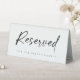 Panneau de tente de table "Réservé" mariage de script moderne.