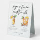 Cet apéritif de bord de mer signature cocktails table signe de tente avec une typographie noire simple au-dessus de 2 boissons et leurs ingrédients pour votre bar mariage. Un joli dessin Piña colada et Mai Tai ajoute une touche cool à votre menu du bar. Complétez avec les noms du couple et la date de leur réception.