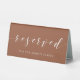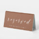 Panneau de table réservé mariage sur mesure avec calligraphie à main moderne avec texte personnalisé sur arrière - plan couleur terre cuite.