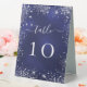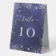 Simple et élégant. Arrière - plan bleu marine, la couleur bleue est inégale. Décoré de parties scintillant en faux argent, pétillant. Personnalisez et ajoutez des numéros de table. Texte blanc.