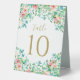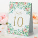 Numéros de table de mariage tropical floral sur la plage avec des fleurs d'hibiscus.