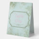 Ce beau numéro de table de tente dans les tons pastel turquoise et vert et le texte rose avec des fleurs blanches délicates ajoute un charme vintage à votre décoration de table tout en aidant vos invités à trouver leurs sièges pour votre réception parfaite.