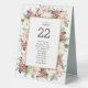 Beau et élégant panneau d'assignation de table. Conçu pour le couple romantique qui aime l'élégance traditionnelle avec des touches délicates d'or. Des flancs d'aquarelle traditionnels entourent un cadre doré mince qui bloque la typographie du panneau. Le design floral présente de belles fleurs mauves et des roses délicates, roses douces, roses et roses blanches, associées à une belle verdure. De petites plantes de remplissage blanc et vert complètent le design.