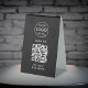 Une simple table d'affaires noire sur mesure haut modèle double face dans un style minimaliste moderne qui peut être facilement mis à jour avec le logo de votre entreprise, le code QR et le texte personnalisé. Le choix idéal pour un restaurant, un café, une hospitalité ou tout autre affaire !