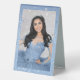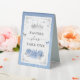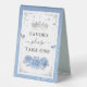 Créez vos propres faveurs personnalisées jolies sur un modèle DIY facile pour une fête sur le thème argent et bleu bébé ! Ajoutez une photo glamour de Mis Quince Anos, une photo de fiançailles, etc. au verso pour profiter des cartes pliées sur pied de table une fois la célébration terminée (par exemple, conservées sur votre bureau comme un souvenir photo). L'art botanique de conte de fées de Raphaela Wilson présente des fleurs aquarelles douces avec des feuilles de feuillage argenté, une couronne de princesse royale et une bordure filigranée vintage qui décore l'espace blanc en dessous. Ces enseignes pliées photo avec modèle floral complètent bien les mariages bleu poussiéreux, une quinceanera princesse Cinderella, une fête d'anniversaire sweet 16 sur le thème de l'hiver, une baby shower, ainsi que pour des baby showers sur le thème du conte de fées. Le texte personnalisé : "Faveurs, prenez-en un" peut être conservé ou simplement modifié pour lire comme vous le souhaitez, comme : "Faveurs, prenez une gâterie". Vous avez de nombreuses options créatives avec ces enseignes pliées personnalisées - n'hésitez pas à changer les couleurs de fond pour compléter votre décoration de fête, à changer le style de typographie de l'écriture calligraphique moderne à d'autres polices, et plus encore. Catégorie : enseignes de fête d'anniversaire élégantes pour table; petites enseignes de mariage intérieures