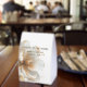 A gorgeous minimalist white and gold color WELCOME TO OUR WEDDING table top sign.