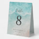 Elevate your reception tablescape with the breathtaking Modern Ocean Tide Watercolor Beach Wedding Acrylic Table Number. This freestanding table tent is crafted from crystal-clear, high-quality acrylic, allowing the vibrant teal and azure watercolor sea-foam design to appear as if it is floating in the air.