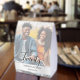 Bring modern elegance to your wedding tables with this custom portrait-photo table number, designed with layered, understated sophistication. The romantic couple photo sits behind soft translucent overlays, allowing every text element to stand out clearly while maintaining a dreamy, contemporary aesthetic.