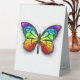 Papillon monarque réaliste dans toutes les couleurs de l'arc-en-ciel sur un arrière - plan blanc. Papillon arc-en-ciel.