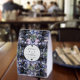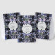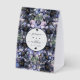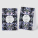A bold and sophisticated Wedding Paper Table Tent featuring dramatic dusty blue and grey floral illustrations against a stark black background. The crisp white typography and classic layout set an elegant, moody tone. Perfect for a formal evening or a sophisticated wedding.