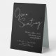 Pour tout besoin de design spécial, n'hésitez pas à entrer en contact avec le concepteur directement en envoyant un courriel à choosehappystudio@yahoo.com Ce panneau mariage moderne et minimaliste à assise ouverte dispose d'une élégante façade de script. Le design joue avec la simplicité d'un design typographique noir et blanc. Un choix parfait pour les couples qui apprécient l'élégance épurée et moderne.