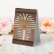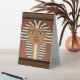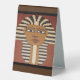 L'image imprimée sur la tente de table est d'une photo d'une tapisserie originale crochet mur suspendu conçu à la main et Copyright © par le designer publié Delores Chamblin. L'image de la création artisanale unique avec l'ancien pharaon égyptien Tut dans les tons bruns de terre naturelle est reproduite sur la tente autonome.