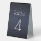Créez votre propre modèle de texte de numéro de table de mariage vertical de 4" x 6" à l'arrière et à l'avant du panneau de tente de table. L'arrière - plan art numérique présente un dégradé sombre marine et bleu nuit. Veuillez noter que vous devrez customiser chaque signe de numéro de table dont vous avez besoin individuellement, en les ajoutant chacun à votre panier un par un.