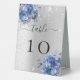 Plaque De Table Numéro de table mariage de fleurs bleues argentées