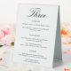 Un élégant numéro de table de mariage double usage et un panneau de menu à placer au centre de chaque table de réception. Tout le texte est modifiable et est le même des deux côtés.