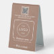 Panneau de table pour les studios de fitness ou de yoga, les salons de beauté ou les médecins avec code qr modèle, logo, nom et numéro de table. Design parfait, élégant et moderne pour les petites entreprises.