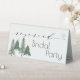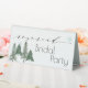 Panneau de réservation pour table en forme de tente en forêt hivernale de pins pour la fête de mariage. Vous pouvez utiliser cette carte pour n'importe quelle fête - mariage, anniversaire de mariage, Noël et Nouvel An, anniversaire, shower de bébé ou enterrement de vie de jeune fille, fiançailles, dîner de répétition