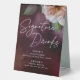 De belles fleurs peintes sur un arrière - plan foncé peint, jumelé à une typographie élégante donnent à cette table de réception de mariage "signature drink" menu signe un style sombre, maussade et romantique. Modifiez simplement le modèle avec vos informations et choisissez n'importe quelle option. Des articles mariages de coordination sont disponibles dans notre magasin ou voir la collection de design...
