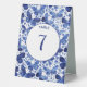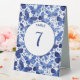 Peinture à papillon bleu et blanc Indigo. Art original de Nic Squirrell. Coordonner la carte de numéro de table recto verso avec le texte qui peut être modifié en fonction de votre célébration.