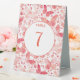 Peinture à papillon rose et blanc de corail tendre. Coordonner la carte de numéro de table recto verso avec le texte qui peut être modifié en fonction de votre célébration.