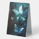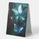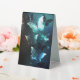 Papillons lumineux de nuit à la menthe sur fond abstrait noir.