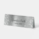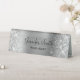 Créez votre propre plaque de nom de bureau personnalisée avec la place pour le nom et le titre de l'emploi à la fois à l'arrière et à l'avant du panneau de tente de table. Le design présente une parties scintillant en argent brillant et faux girly sur les bords latéraux sur un arrière - plan en feuille de dégradé gris argenté foncé et faux art numérique. La couleur principale de la parties scintillant décorative effets numériques, ombre graphique et élégante calligraphie sont gris, argent, noir et blanc. Le style et la taille de la police peuvent être modifiés si nécessaire. Supprimez d'un côté si vous préférez.