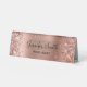 Créez votre propre plaque de nom de bureau personnalisée avec la place pour le nom et le titre de l'emploi à la fois à l'arrière et à l'avant du panneau de tente de table. Le design présente une parties scintillant en or rose brillant et faux girly sur les bords latéraux sur un art numérique blush et rose arrière - plan en feuille de dégradé sombre et brillant. La couleur principale de la parties scintillant décorative effets numériques, ombre graphique et élégante calligraphie sont blush, rose, or rose, bordeaux clair, gris, argent, noir et blanc. Le style et la taille de la police peuvent être modifiés si nécessaire. Supprimez d'un côté si vous préférez.