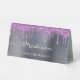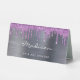 Panneau de la tente de la Parties scintillant à goutte violette. Customisez pleinement cette parties scintillant à goutte violette argent brossé métal professionnel panneau de table de table professionnelle professionnelle avec votre nom et titre de position. Ce design élégant et glamour s'adapte particulièrement bien aux entreprises et salons de l'industrie de la beauté, de la cosmétique et de la mode.
