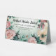Apportez élégance et clarté à votre événement avec ce panneau de table modifiable, parfait pour l'étiquetage des aliments. Un arrière - plan vert sauge doux est orné de roses d'aquarelle rose, de marguerites jaunes et de verdure luxuriante, idéal pour les mariages, les fêtes de jardin et les réceptions de printemps ou d'été. Customisez le texte pour nommer les plats, énumérez les détails relatifs aux allergies et ajoutez une brève description. Le dos comprend de l'espace pour votre logo, offrant une touche polie et de marque pour une présentation professionnelle.