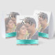 Across the bottom third, a chic turquoise blue band creates a polished, modern contrast. Here, your names and wedding date appear in clean white with black drop shadow lettering for a timeless, sophisticated finish. Both the upper and lower text areas are fully editable, and the background photo can be replaced with any picture you choose.