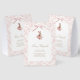 Designed to match a pink bunny birthday theme, it features soft colors and elegant toile styling.