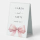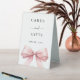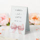 White elegant background, decorated with a large pink bow. Text: Cards and Gifts. Thank you!
